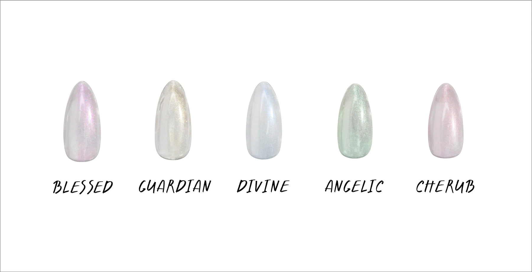 We’ve created the shimmery topcoat collection of your dreams with our new Heavenly Top Gelcoat. Shades include Blessed (Purple), Guardian (Gold), Divine (Blue), Cherub (Pink/Red), and Angelic (Green). These five celestial shades pair perfectly with our Neutrals Gel-X Tips for a simple, yet very finished look. We also recommend using over Gel Couleur or your natural nail for a effortless, yet glamorous look. Truly a match made in heaven.